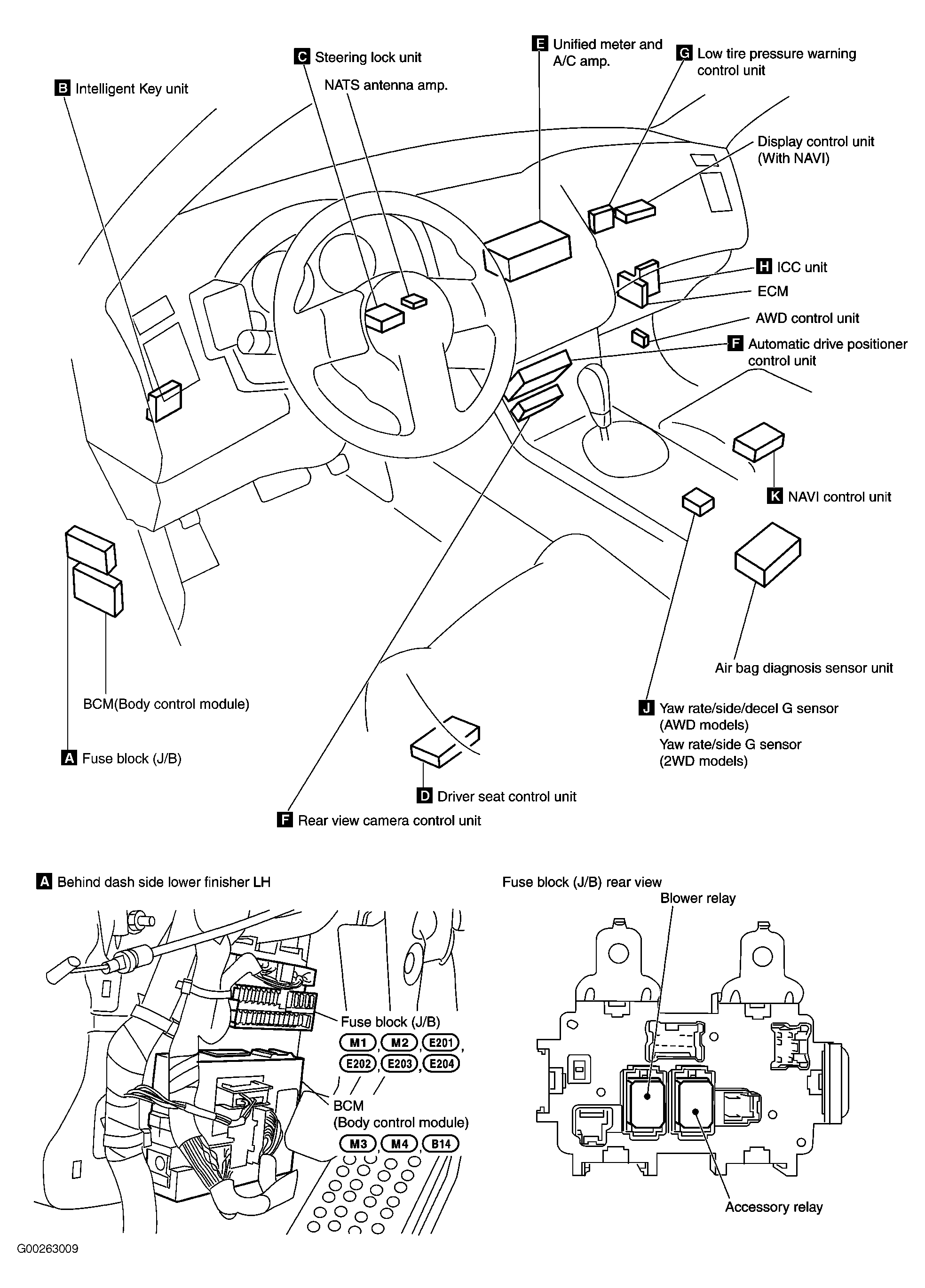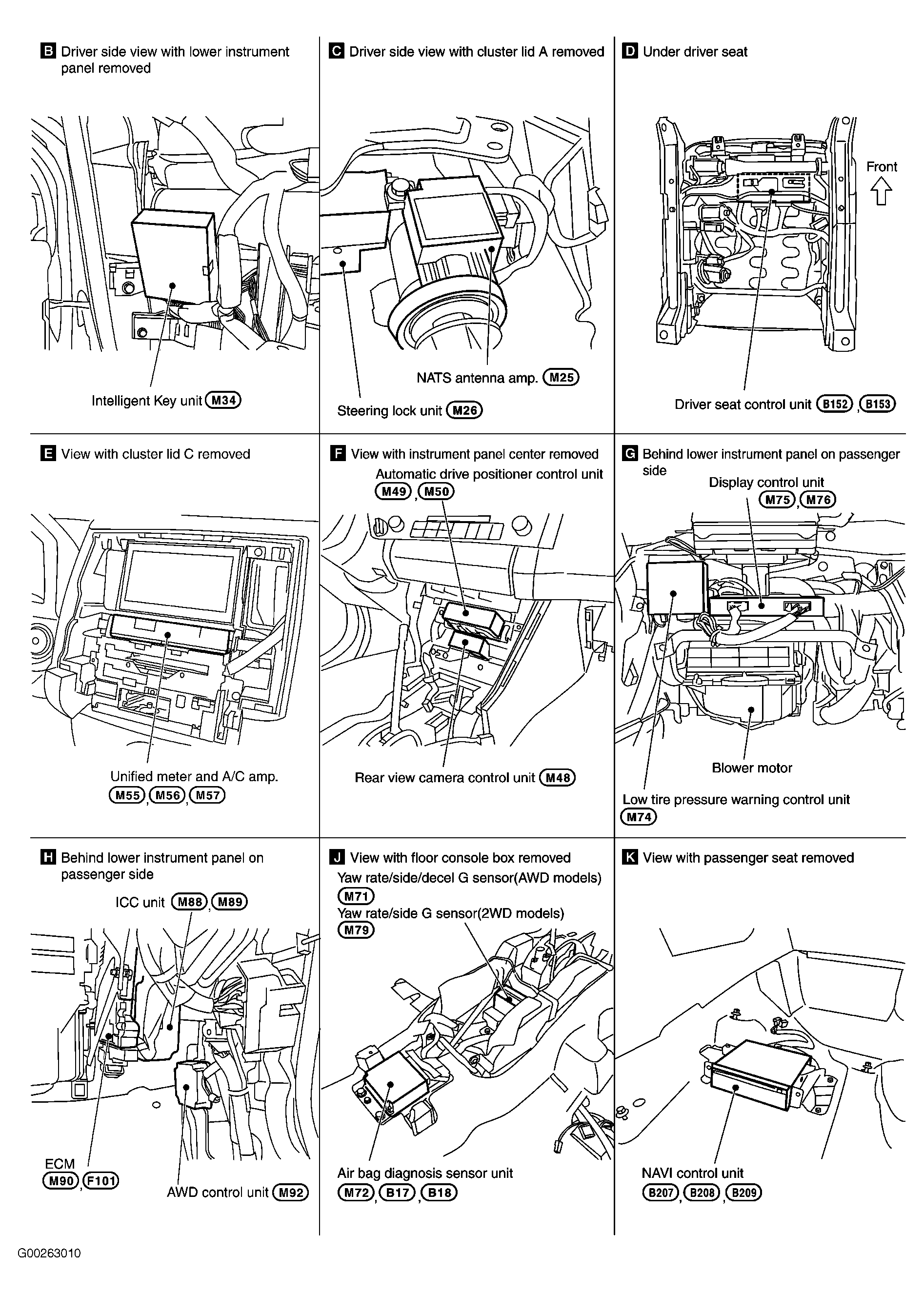 | NAVI Control Unit | Under front passenger seat. See Figure . |