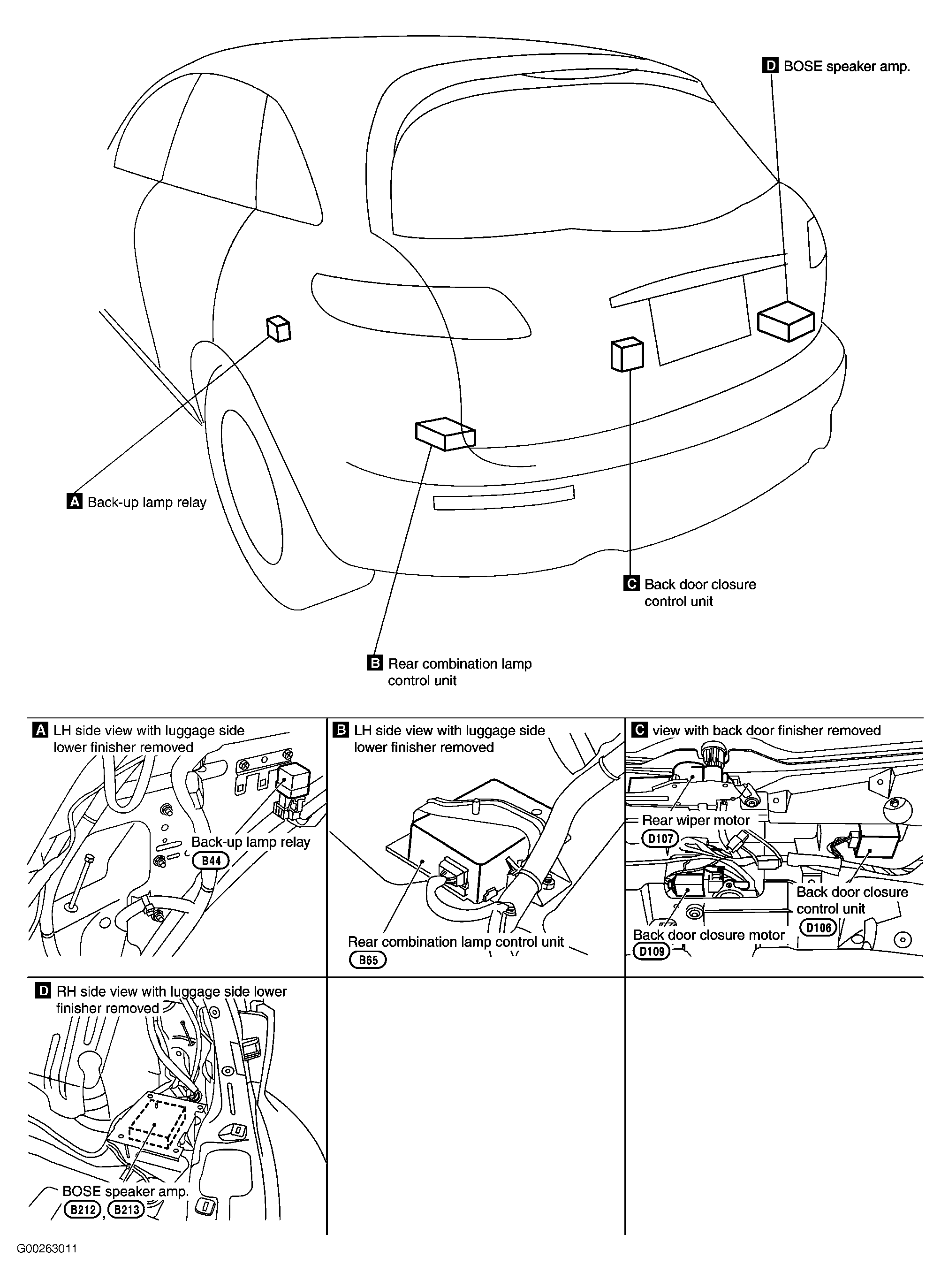 | Rear Combination Lamp Control Unit | Left rear of luggage compartment. See Figure . |