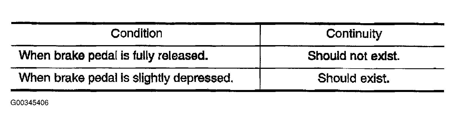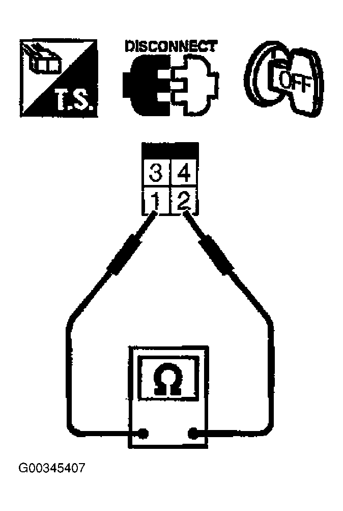 3. Check harness continuity between stop lamp switch terminals 1 and 2 under the following conditions. See Figure and Figure .