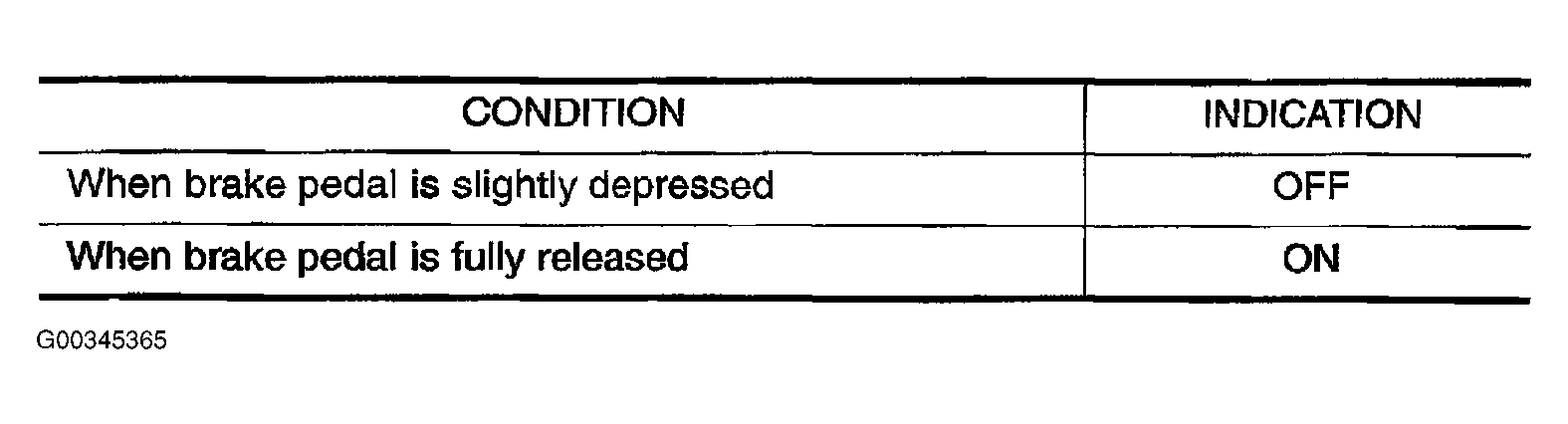 Check BRAKE SW2 indication in DATA MONITOR mode. See Figure and Figure .