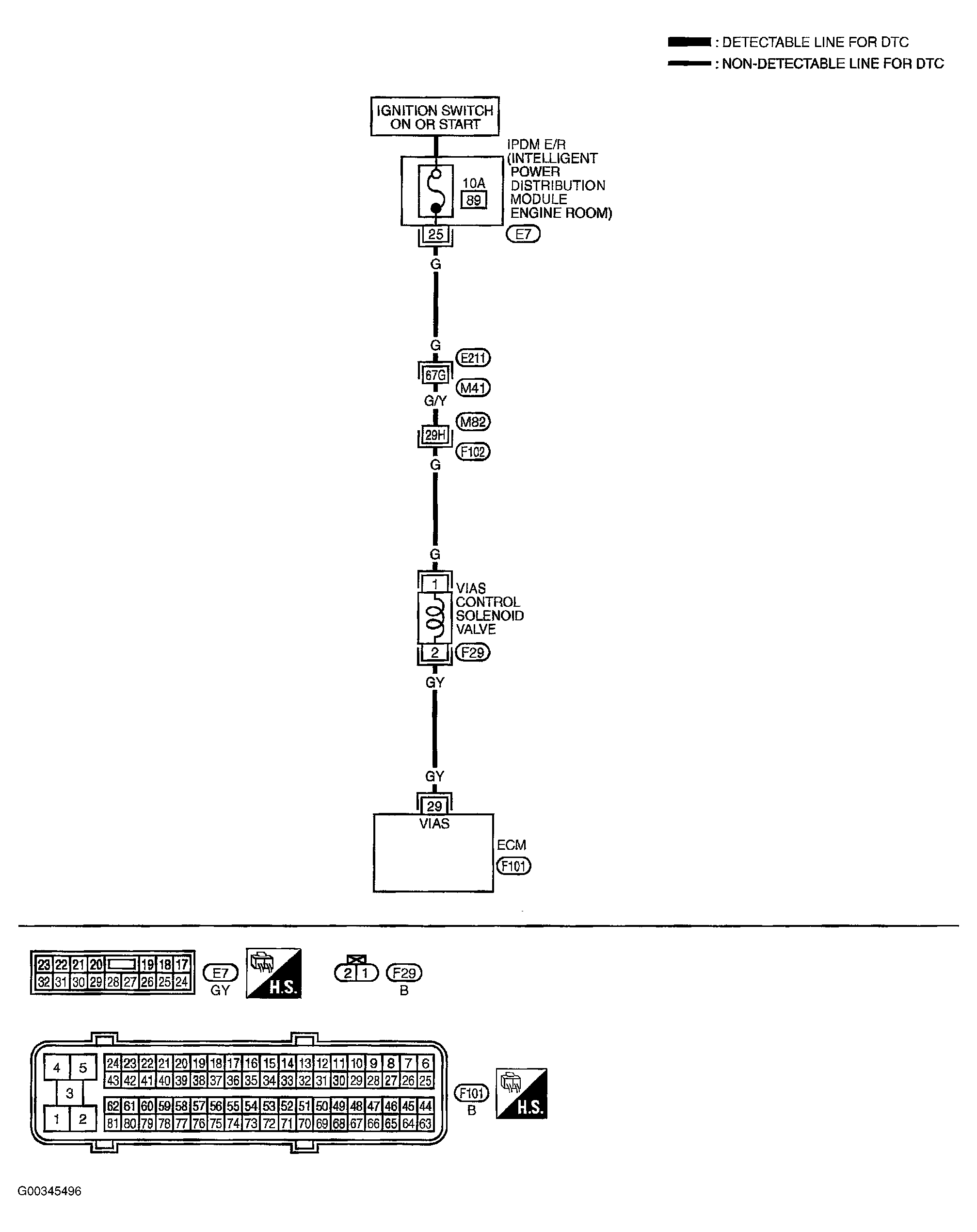 • Harness continuity between IPDM E/R and VIAS control solenoid valve