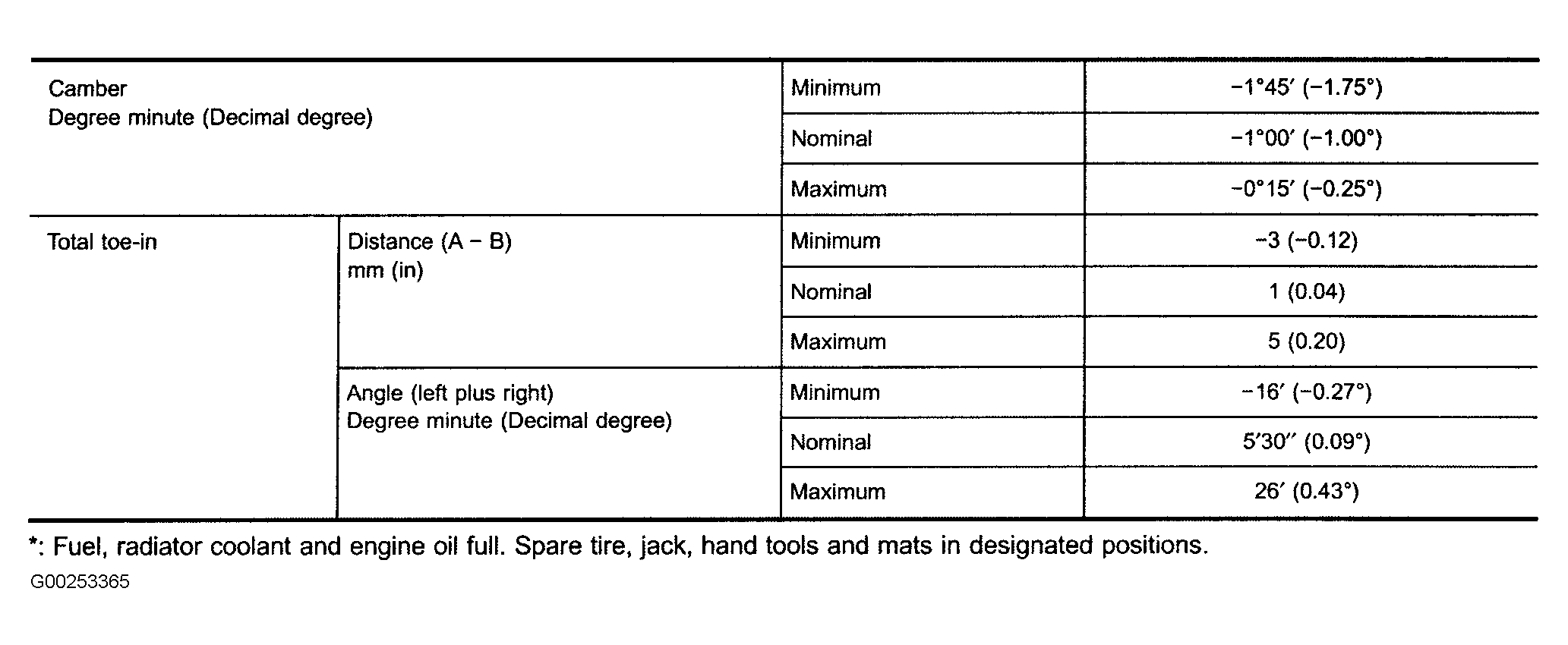 Fig 1: Front Wheel Alignment Specifications (I35)