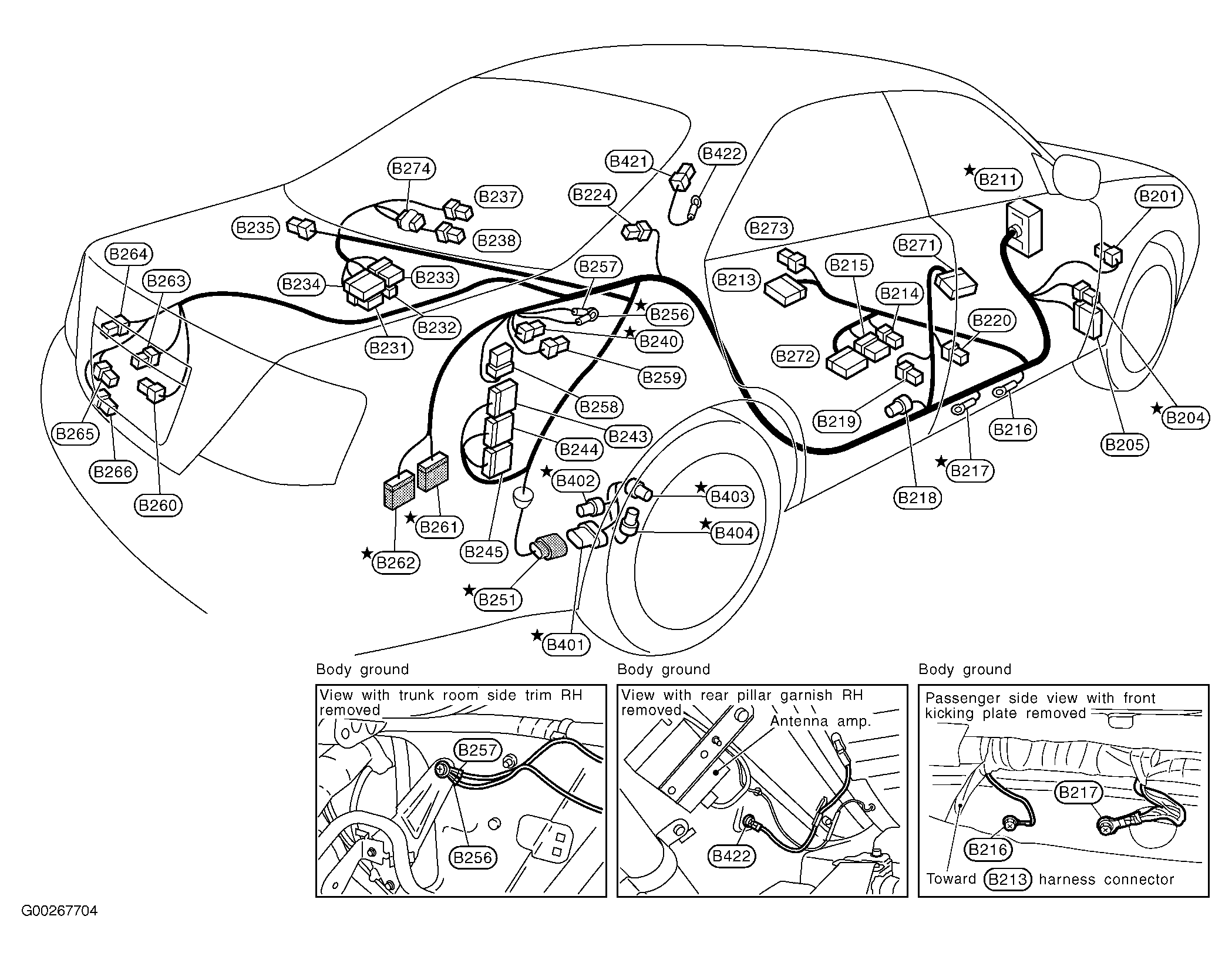 | Trunk Closure Control Unit | At rear center of luggage compartment. See Figure . |