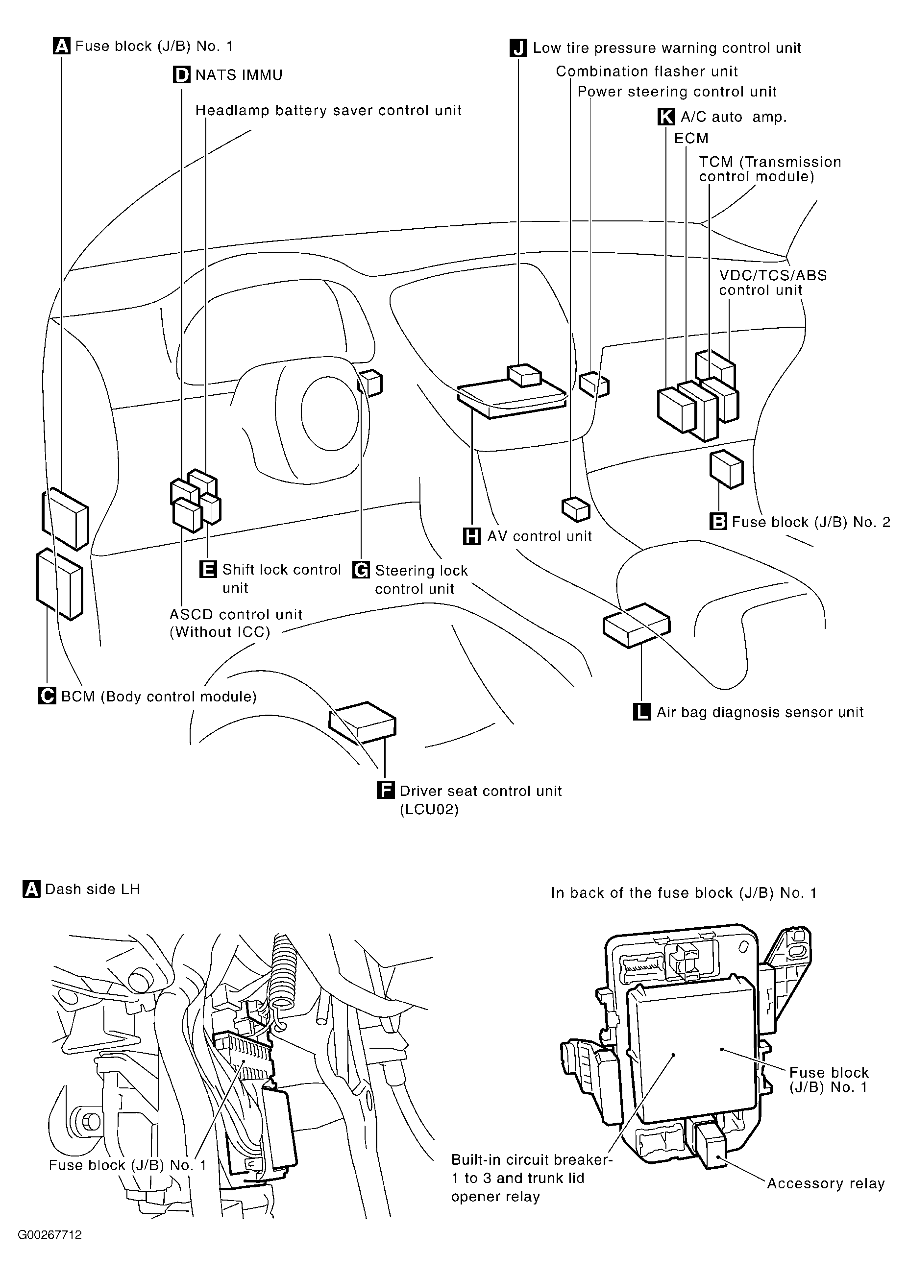 | Shift Lock Control Unit | Behind left side of dash. See Figure . |