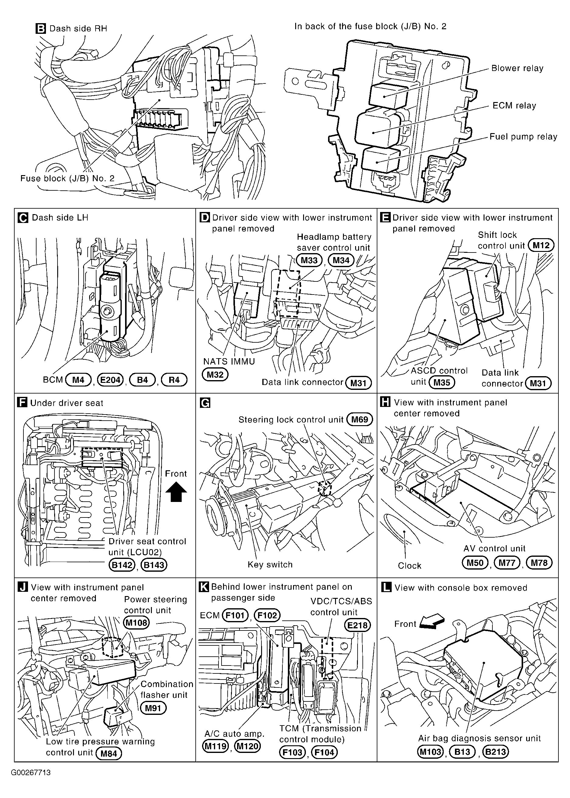 | Driver's Seat Control Unit (LCU02) (B142) | Under driver's seat. See Figure . |