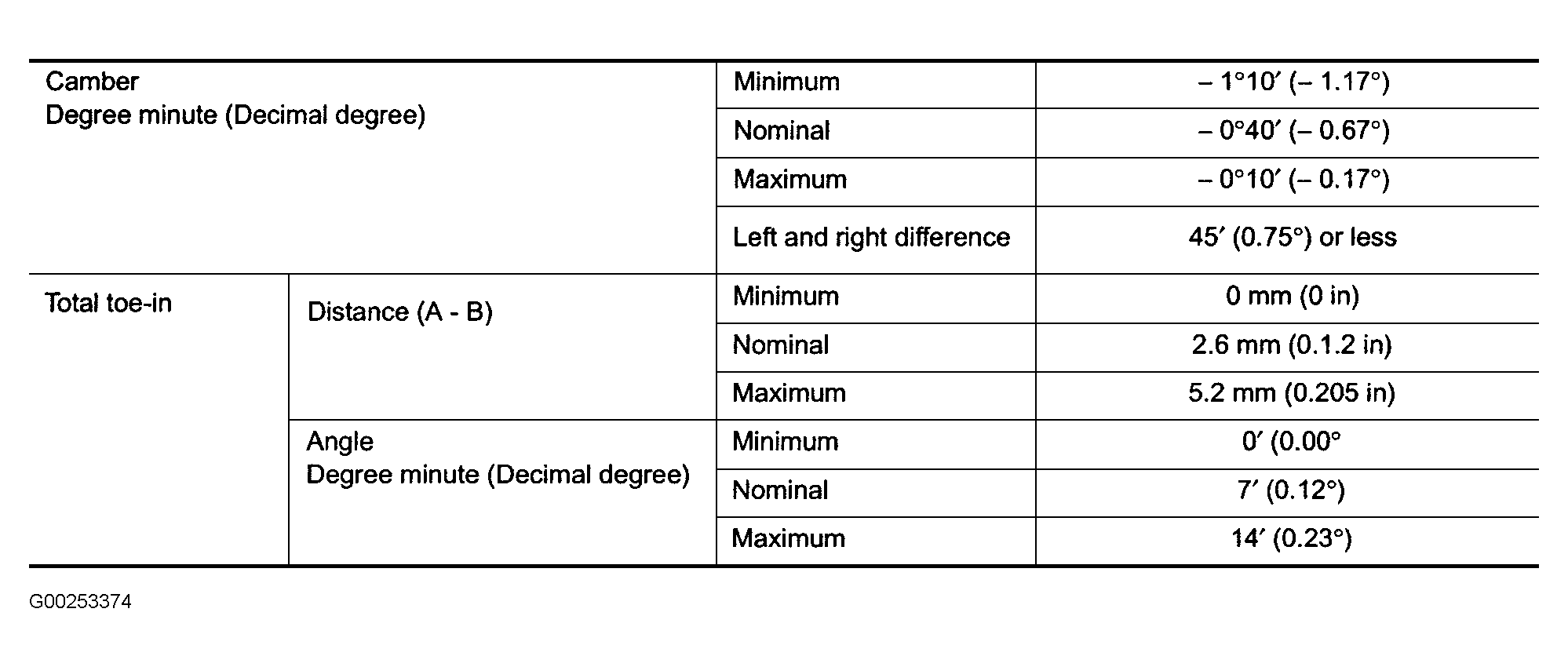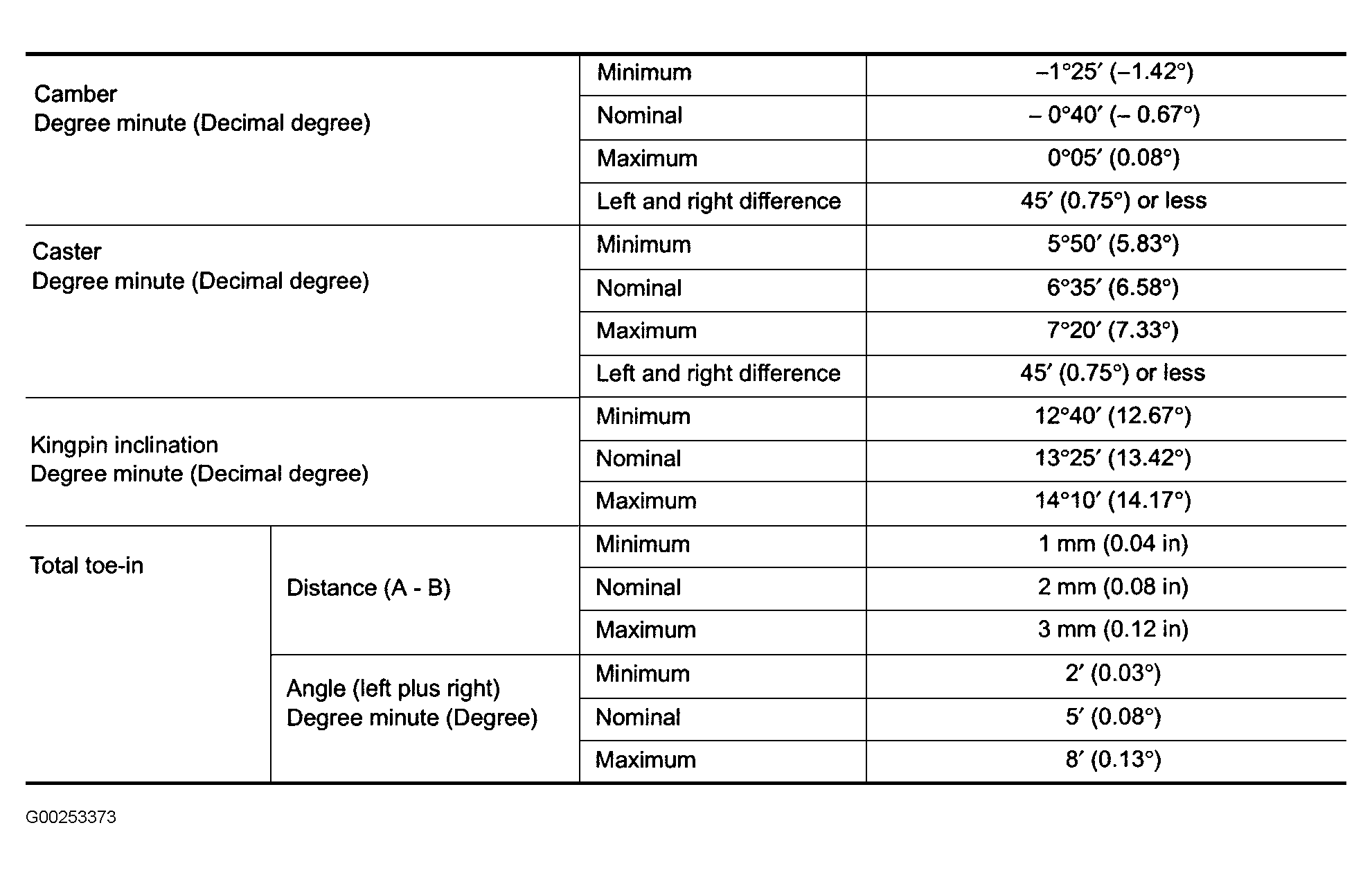 Fig 1: Front Wheel Alignment Specifications (M45)