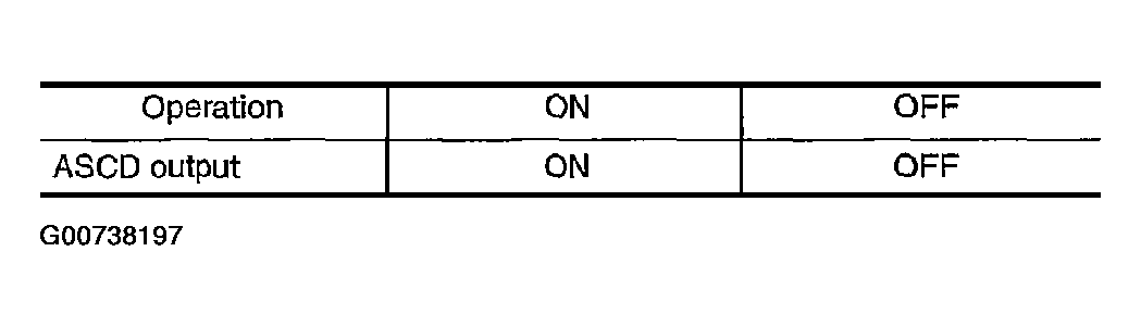 Touch "ON" and "OFF" on the screen. Check that ASCD output is as shown in