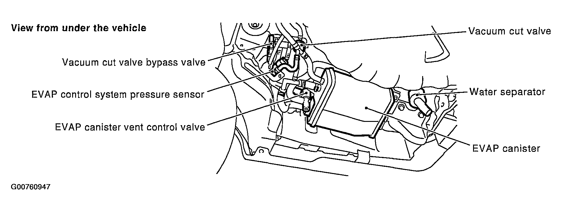 The EVAP control system pressure sensor detects pressure in the purge line. The sensor output voltage to the ECM increases as pressure increases. For location of EVAP control system pressure sensor, see Figure.