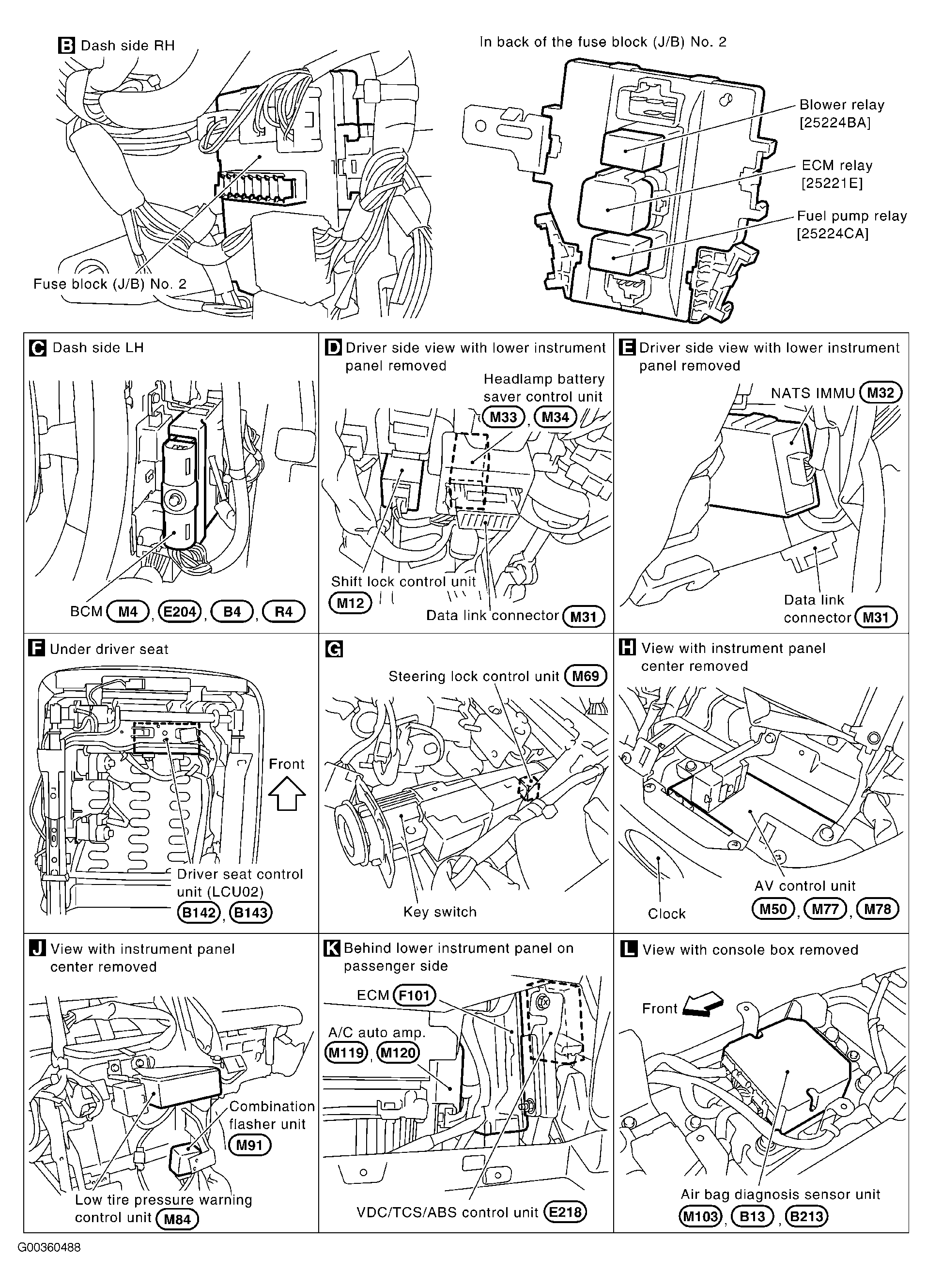 | Trunk Lid Opener Relay | On back of fuse block (J/B) No.1. See Figure . |