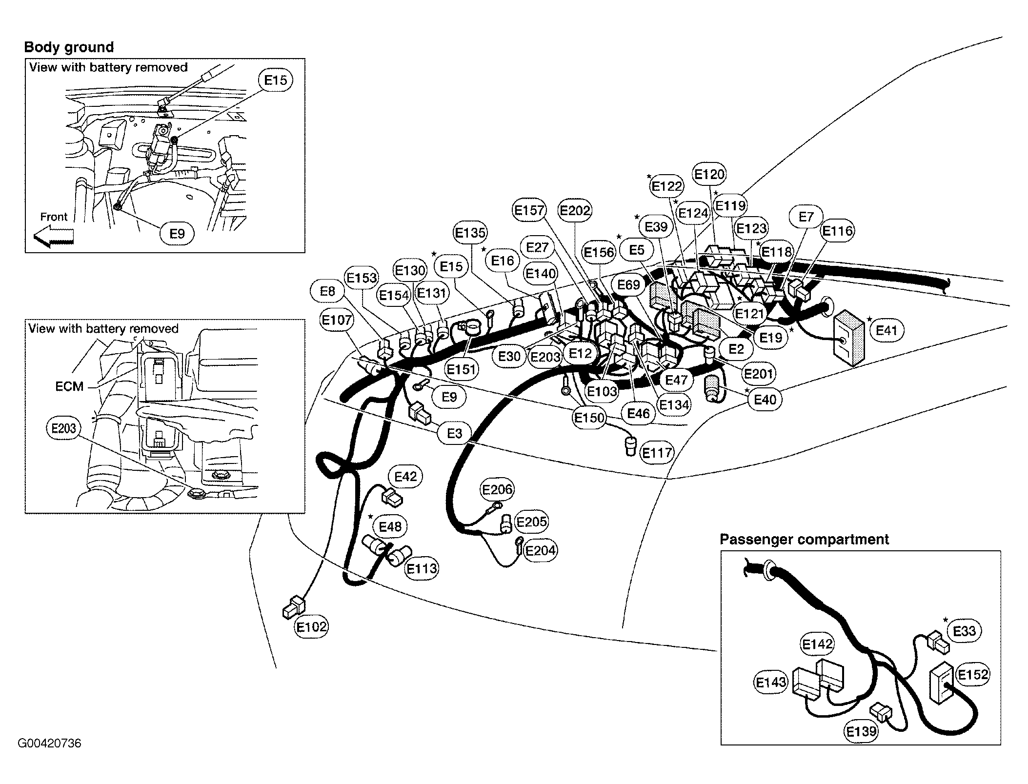 | Fusible Link Box (Battery) (E128) | Right side of engine compartment. See Figure. |