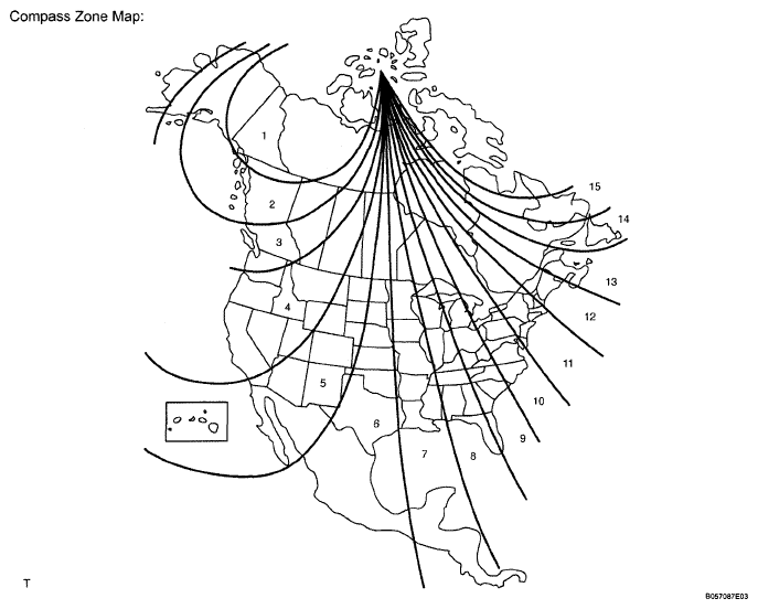 2. The displayed number increases +1 every time the compass switch is pressed. Referring to the map, check the number for the area where the vehicle will be used and set the zone number.