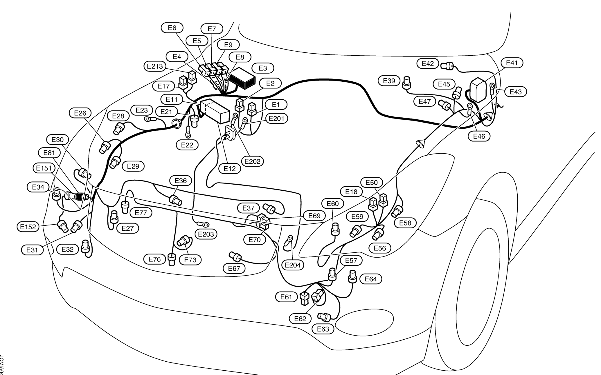 | TCM (Transmission Control Module) (F151) | Right front of engine compartment. See Figure. |