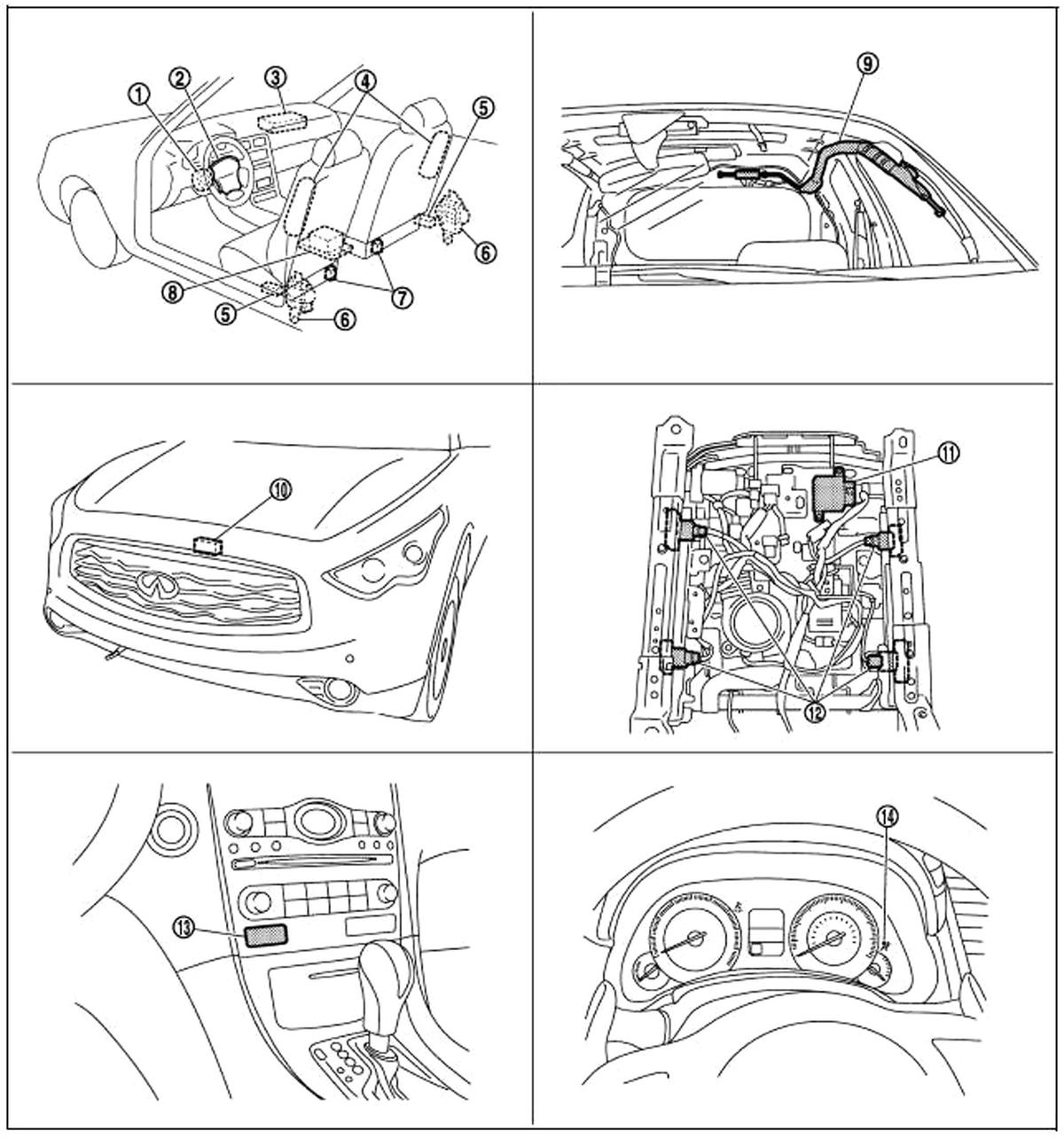 | Occupant Detection System Control Unit (11) | Under front passenger's seat. See Figure. |