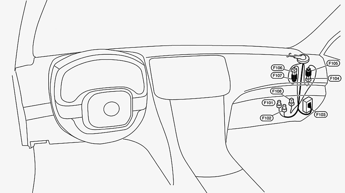 | AWD Control Unit (F108) | Behind right end of dash. See Figure. |
