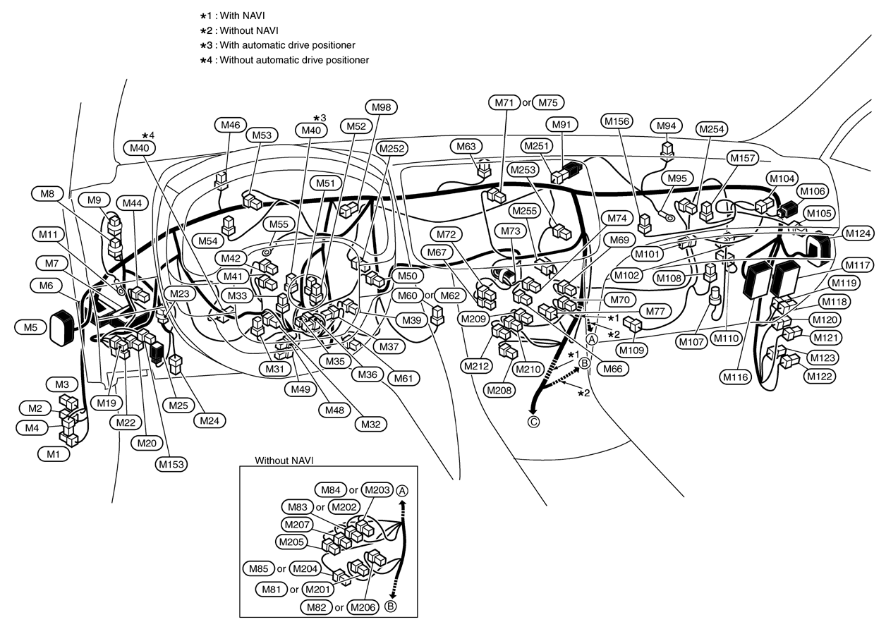 | Automatic Drive Positioner Control Unit (M52) | Under left side of dash. See Figure. |