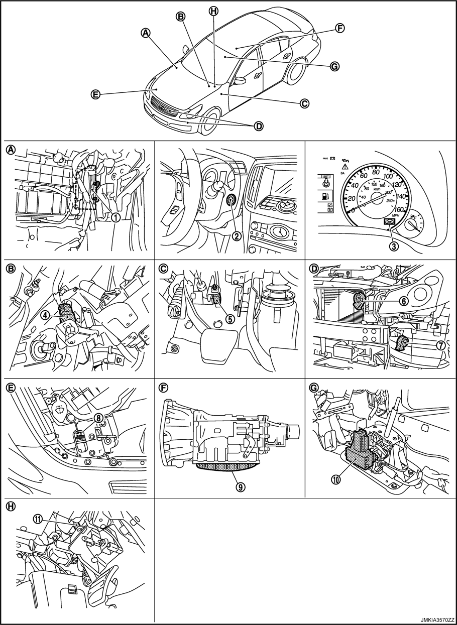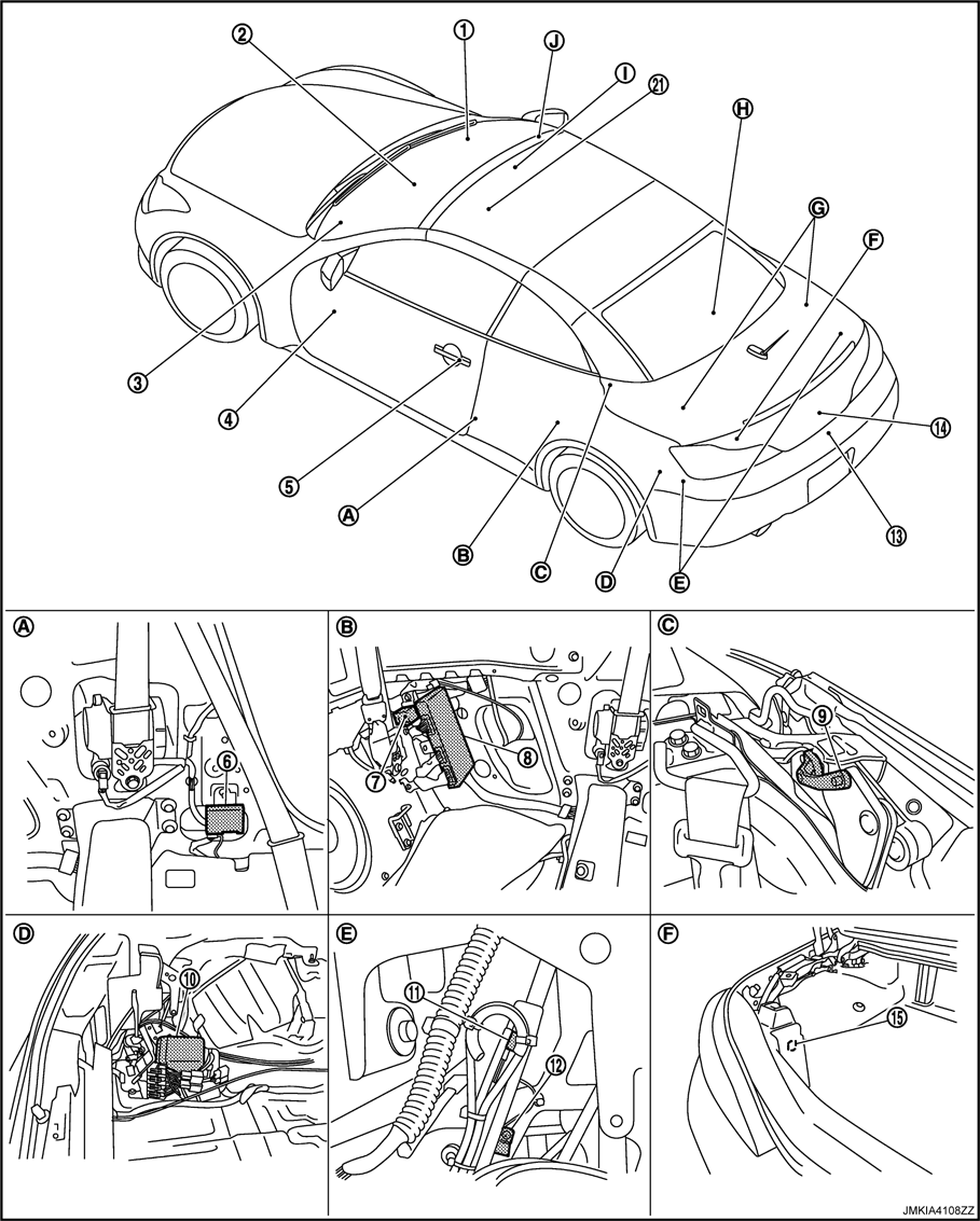 | ABS Actuator & Electric Unit (Control Unit) (E41) | Left rear of engine compartment. See Figure. |