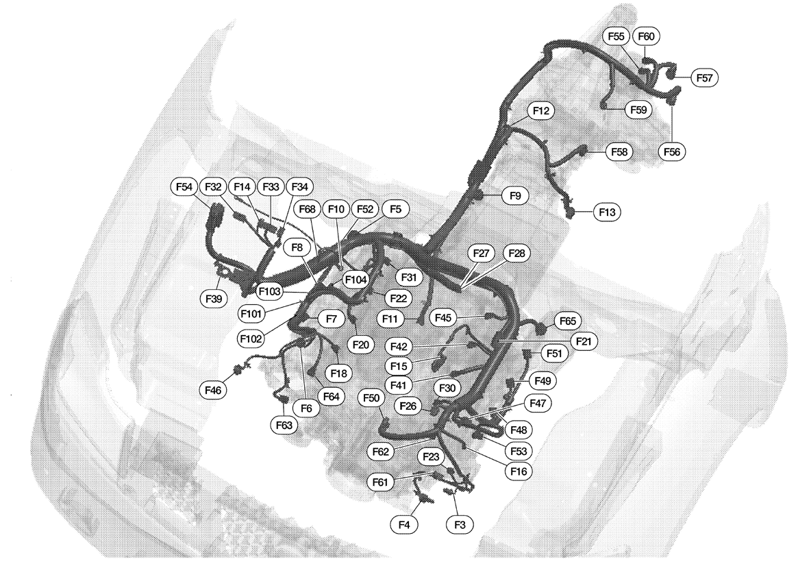 | ECM (Engine Control Module) | Right rear of engine compartment. See Figure. |