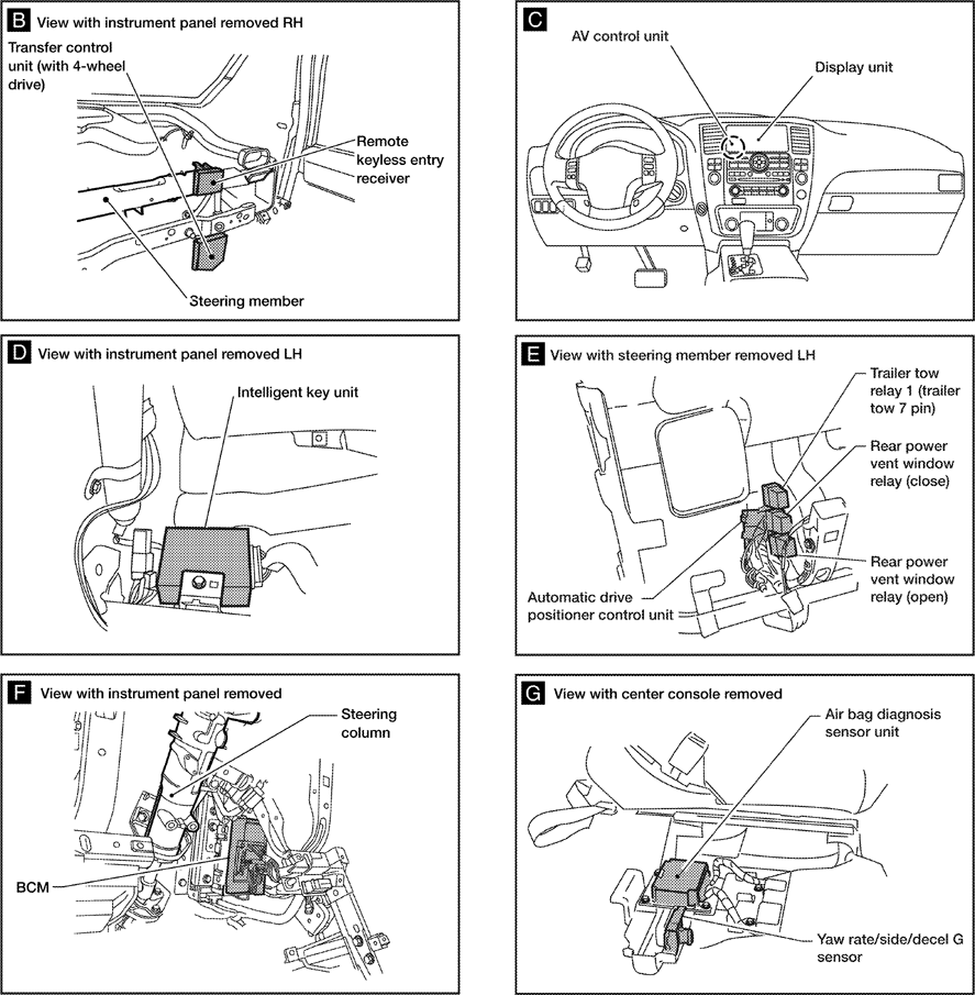 | AV Control Unit (M42) | Below center of dash. See Figure. |