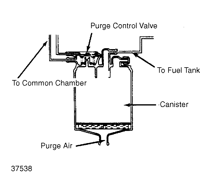 System components vary by model. See Figure &Figure . Components include a sealed filler cap, vapor separator, check and relief valve, canister and purge control valve, vent valve, vent switching valve (solenoid operated), relief valve, roll-over and float valve, 2-way valve, and connecting lines and hoses.