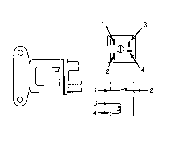 Terminal No. 1 is an input for battery voltage on both relays. Terminal No. 2 is an output to the sensing resistor on relay No. 1, and an output to the dropping resistor on relay No. 2. Terminal No. 3 is an input from controller on relay No.1, and an input from the starter switch on relay No. 2. On both relays, terminal No. 4 is ground. See Fig 1 .