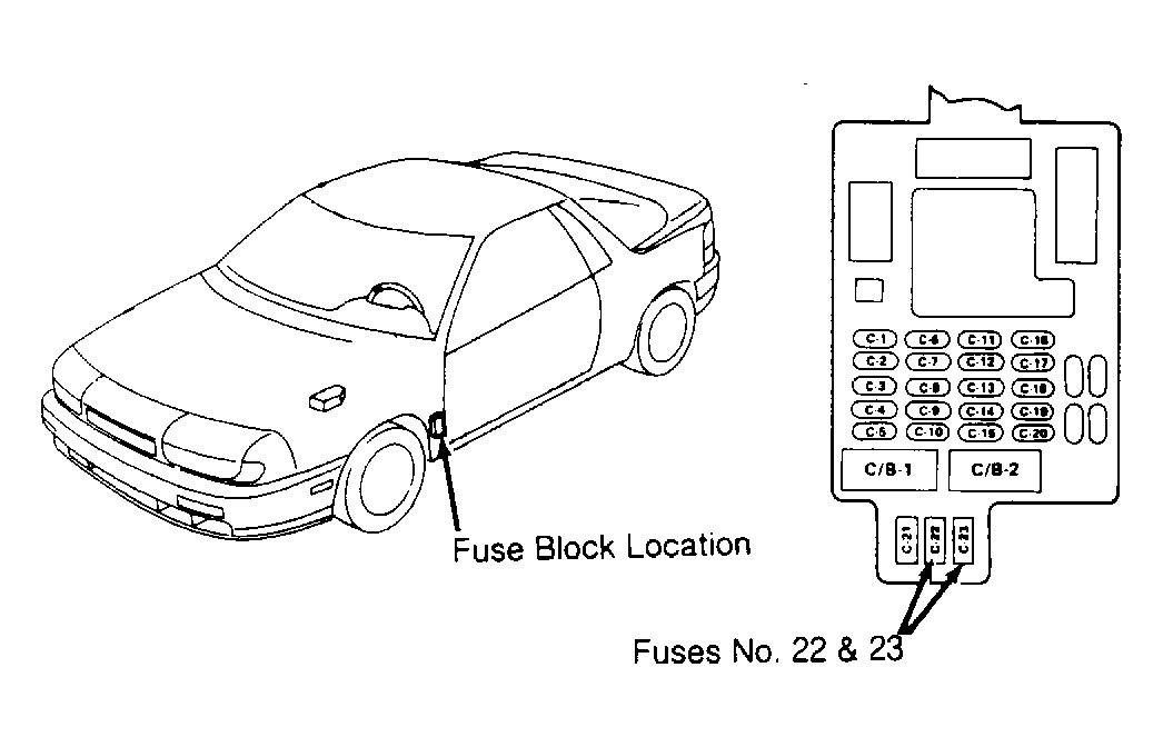 Before any repairs are performed, disconnect and shield negative battery cable. Remove 2 SIR fuses (No. C-22 and C-23) from bottom of fuse block behind left kick panel. See Fig 1 . Disconnect Orange 3-wire connector, near base of steering column. Wait at least 10 minutes after disconnecting fuses before proceeding with repairs.