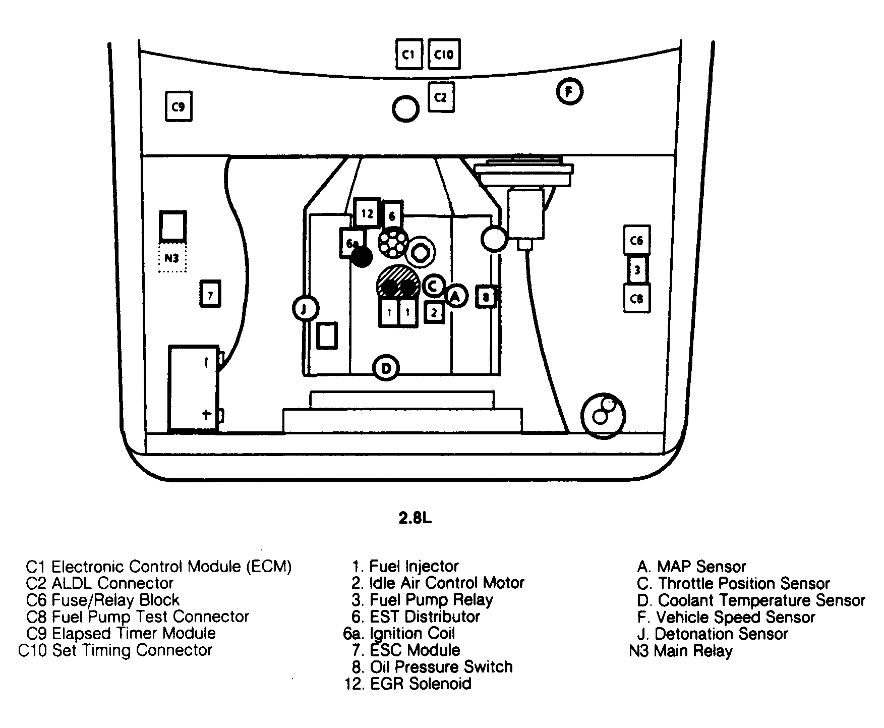 | Fusible Links (2.6L) | In front of battery, and on fuse/relay block. |