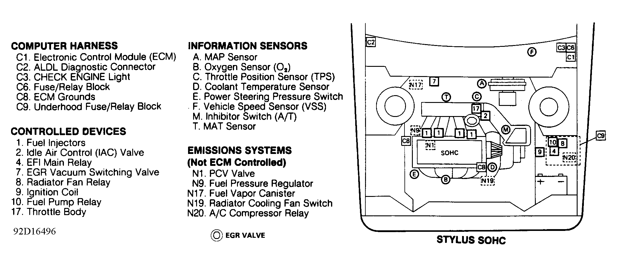 | Stylus SOHC | Behind left side of dash. See Figure . | |