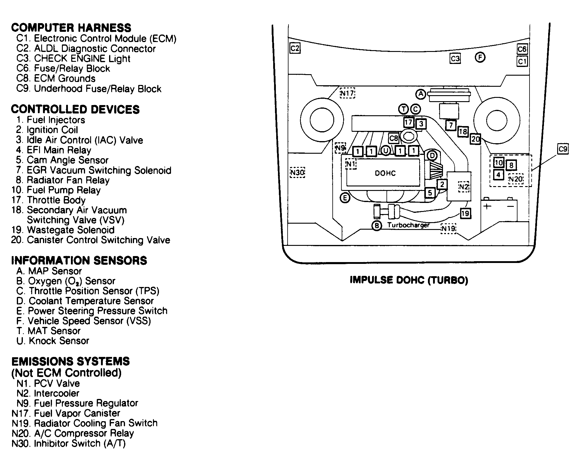 | Impulse DOHC (Turbo) | Behind left side of dash. See Figure . | |