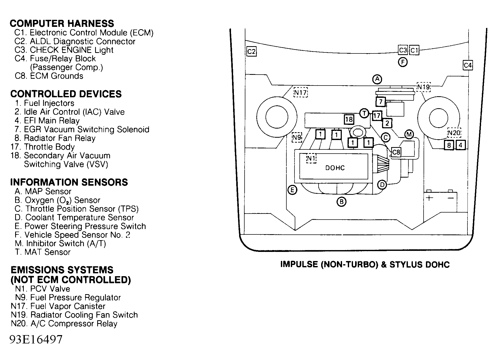 | Impulse (Non-Turbo) & Stylus DOHC | Behind left side of dash. See Figure . | |