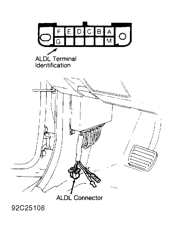 - To retrieve codes, install a jumper wire between terminals "A" and "B" of ALDL diagnostic connector. ALDL diagnostic connector is located near left kick panel on all vehicles. See Fig 1 .