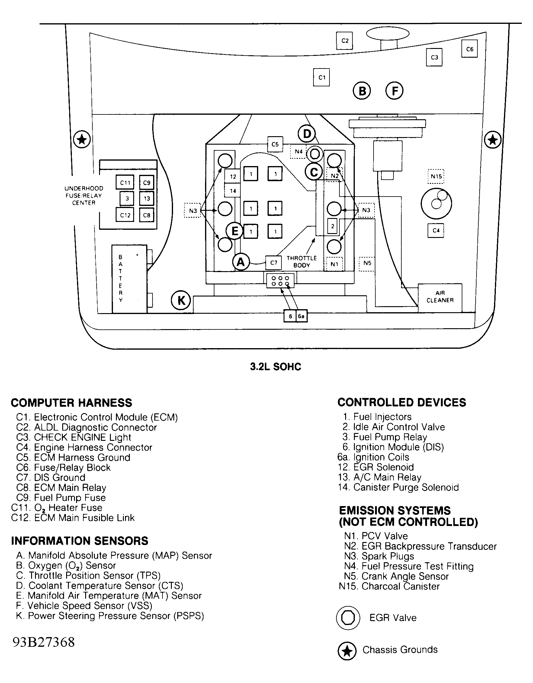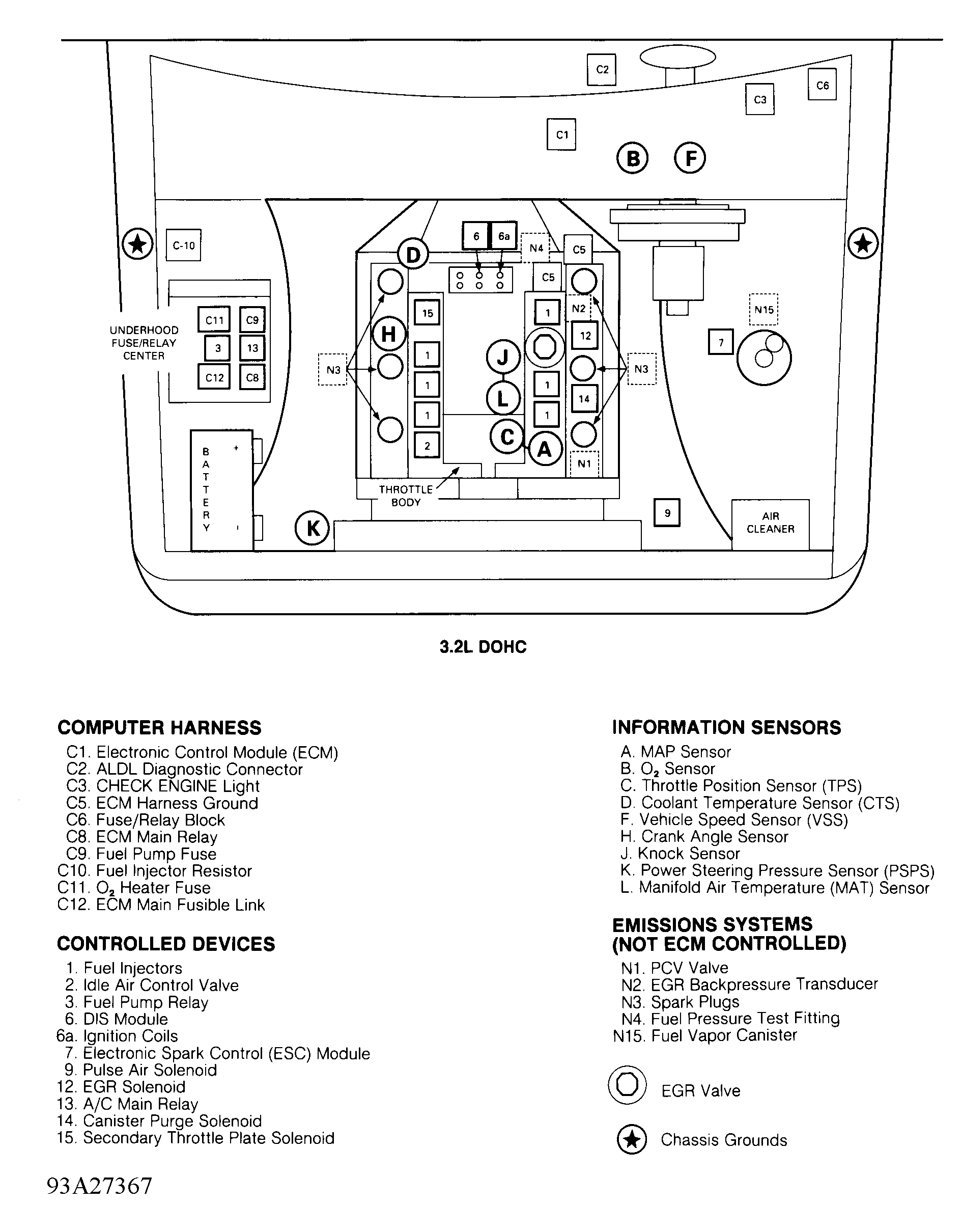 | Electronic Control Module (ECM) (3.2L DOHC) | Behind center of dash. See Figure & Figure . |