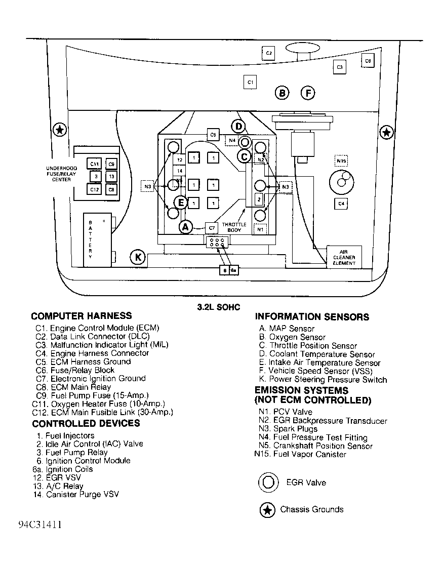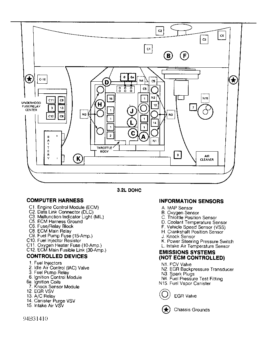 | ECM (3.2L SOHC) (Engine Control Module) | Behind center of dash. See Figure . |