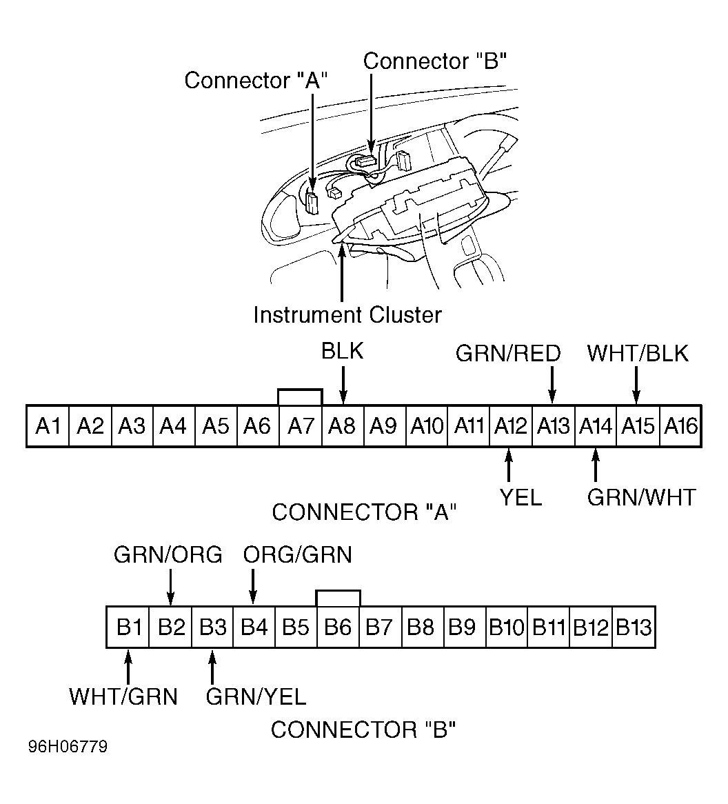 - Remove instrument cluster. Disconnect connectors "A" and "B". SeeFig 1