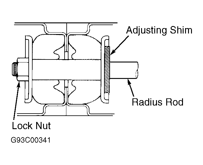 - If caster needs adjustment, raise front of vehicle and support it using safety stands. Remove lock nut on end of radius (strut) rod. See Fig 1 . Remove radius rod bolts and radius rod from lower control arm.