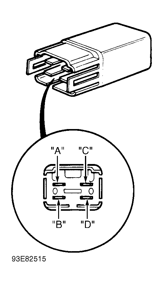 Remove power window relay from underhood fuse/relay box. Using jumper wires, connect terminals "C" and "D" to battery voltage and ground. SeeFig 1 . If continuity does not exist between terminals "A" and "B", replace relay.