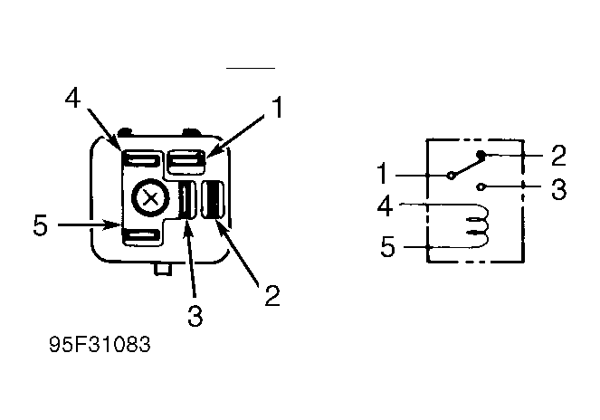 - To test relay, remove fuel pump relay from fuse/relay box on right fender panel. Using jumper wires, ground terminal No. 4, and apply battery voltage to terminal No. 5. See Figure . There should be continuity between terminals No. 1 and 3 with relay energized. If continuity does not exist, replace relay.