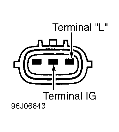 - Unplug generator connector. Using a fused jumper wire, connect terminal "L" of harness connector (White/Green wire) to ground. See Fig 1 . If charge indicator light comes on, repair or replace generator. If charge indicator light does not come on, locate and repair open in (White/Green wire) between harness connector terminal "L" and ignition switch. Check for an open in generator warning light bulb.
