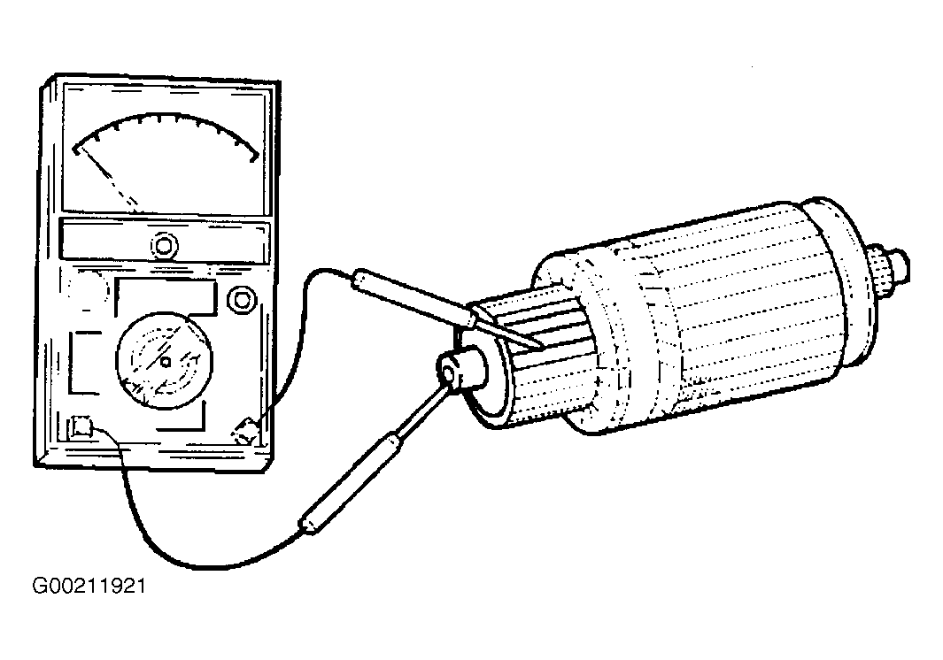 - Check for continuity between commutator and shaft. Also, check for continuity between commutator and armature core, armature core and shaft. Replace commutator if there is continuity. See Fig 3. See STARTER SPECIFICATIONS .
