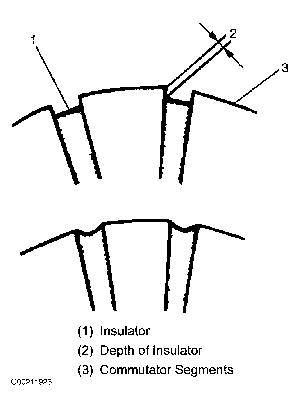 - Measure the depth of insulator in commutator. Replace, if it is below the limit. See Fig 6. See STARTER SPECIFICATIONS .