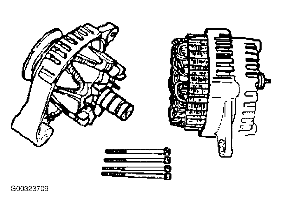 - Remove the through bolt. Insert the tip of a pry bar into the gaps between the front cover and the stator core. Pry apart and separate the front cover, rotor, the rear cover and stator. See Fig 1