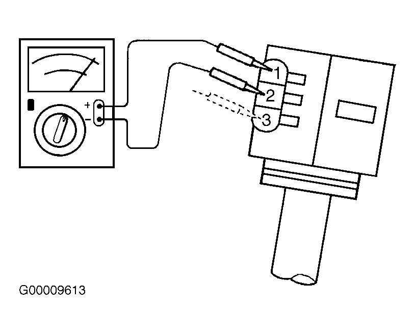 Use DVOM to measure resistance between terminals No. 1-2, 1-3 and 2-3. See