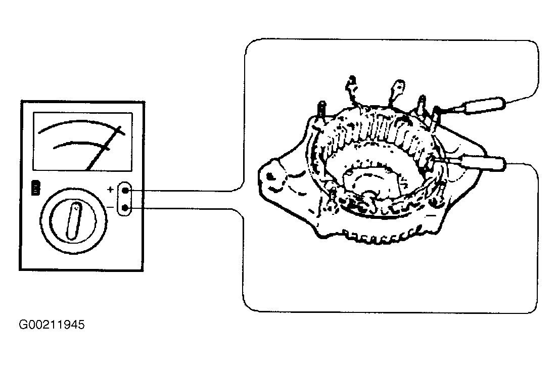 Measure insulation resistance between stator coil and core with a mega-ohmmeter. If less than standard, replace the coil.