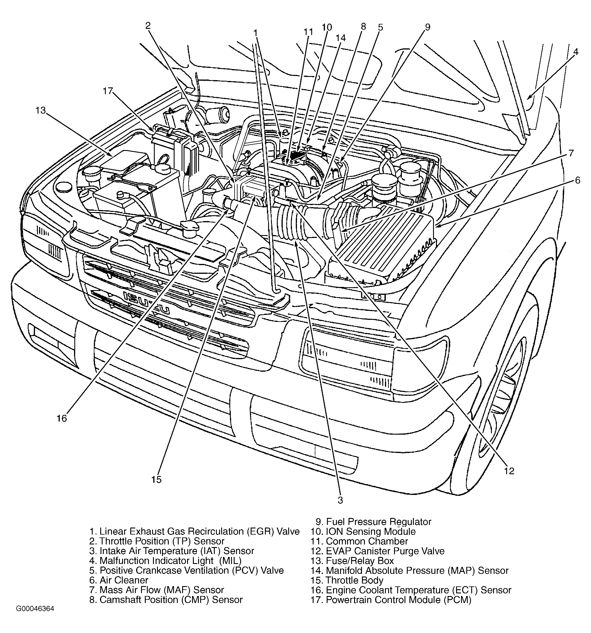 Fig 2: Component Locations (Axiom 3.5L, Passport, Rodeo & Rodeo Sport 3.2L)