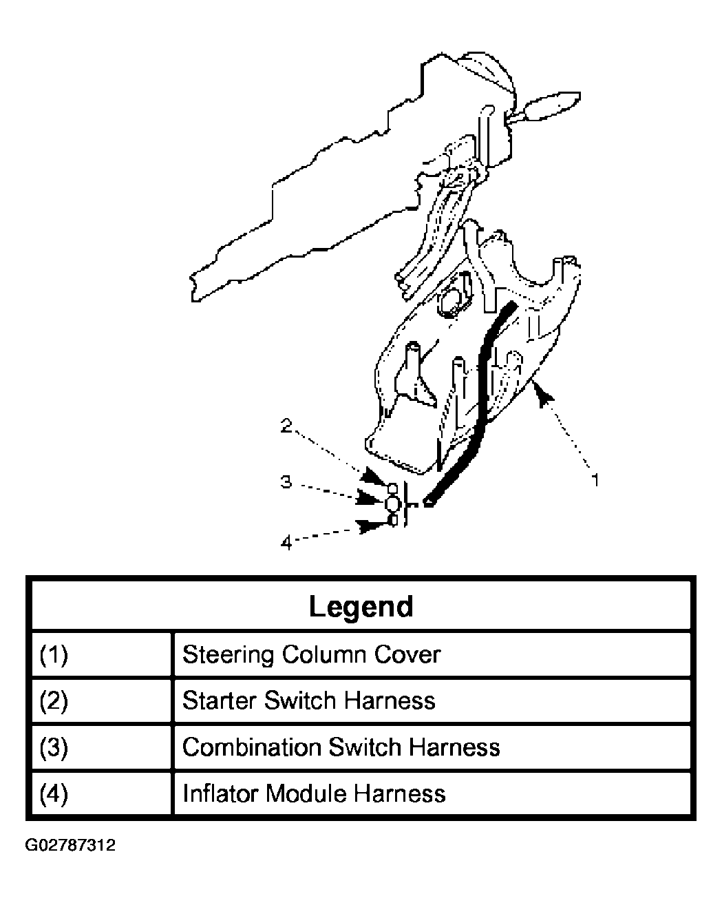 - When installing the steering column cover, be sure to route each wire harness as seen in Fig 2 so that the harnesses do not catch any moving parts.