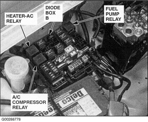 | Diode Box "B" | In fuse/relay box. See Figure . |