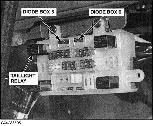 | Diode Box No. 5 | In dash fuse box. See Figure . |