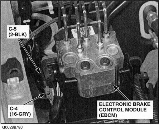 | Electronic Brake Control Module (EBCM) | On right rear corner of engine compartment. See Figure . |