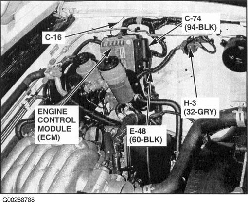 | Engine Control Module (ECM) (3.2L) | Left rear of engine compartment. See Figure . |