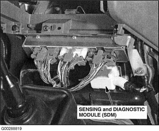 | Sensing & Diagnostic Module | Below center of dash. See Figure . |