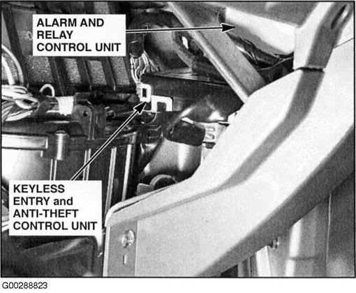 | Keyless Entry & Anti-Theft Control Unit | Behind right side of dash, above kick panel. See Figure . |
